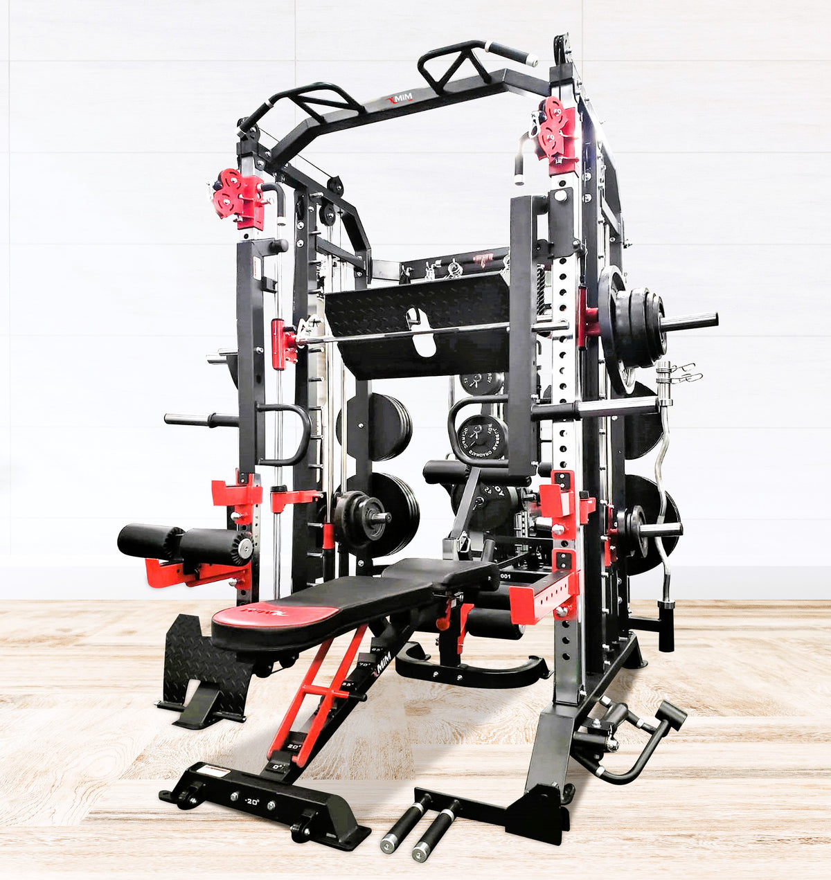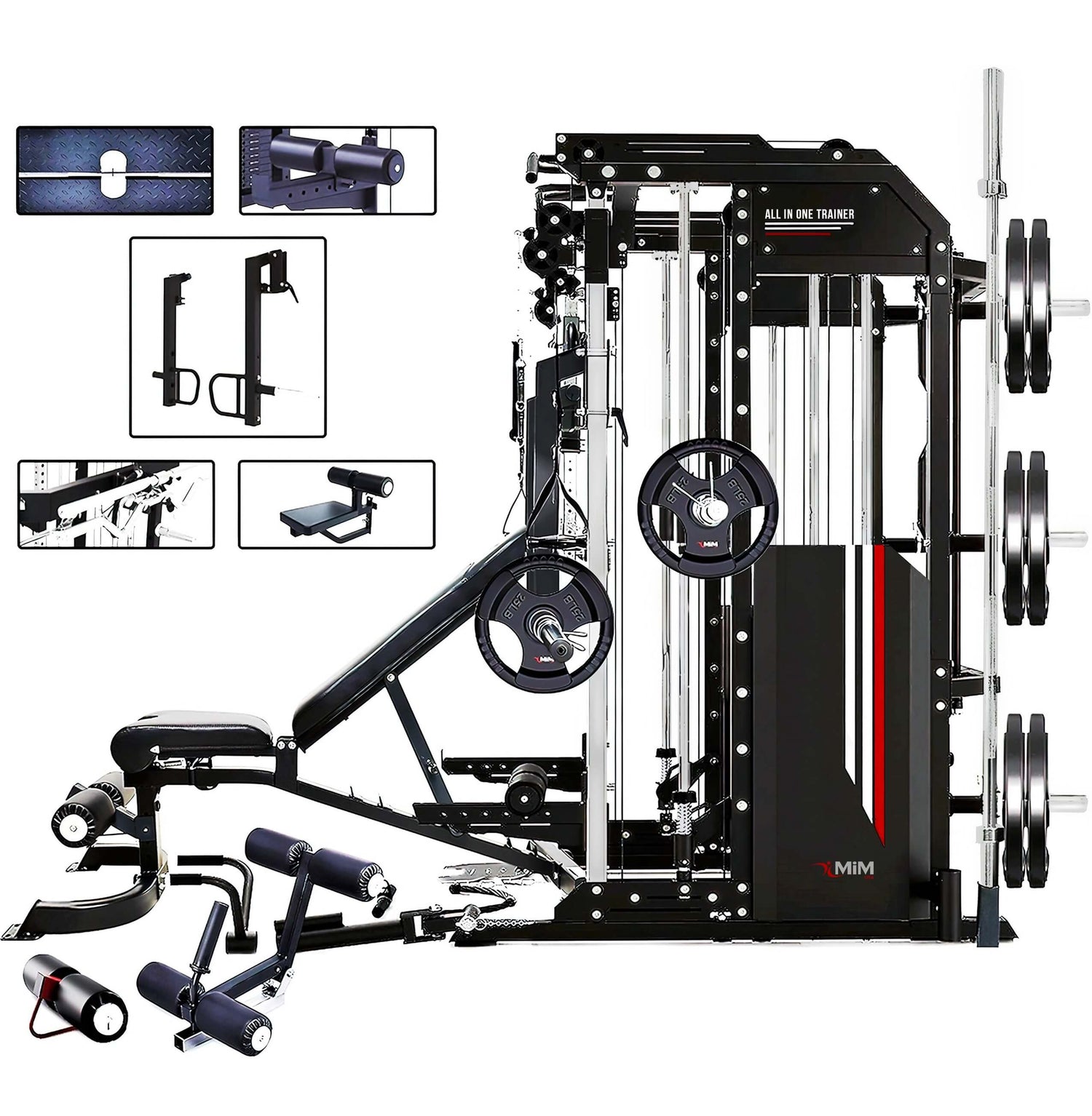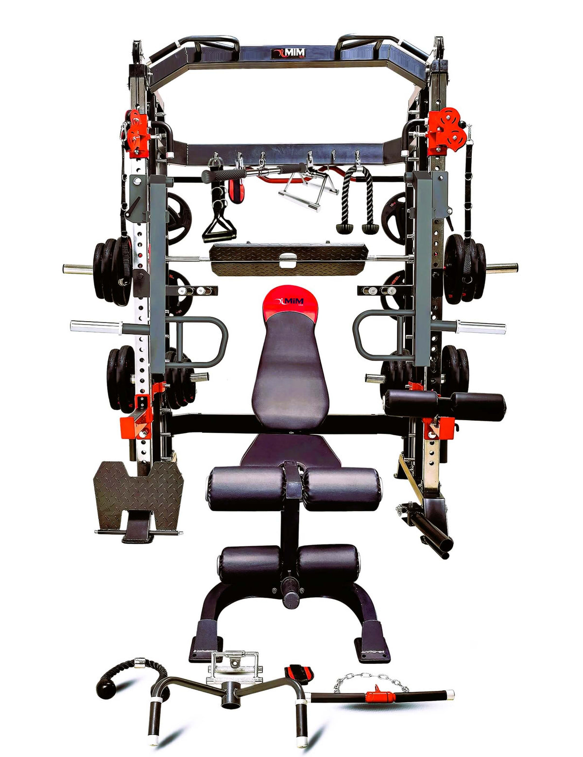 THE MULTI-FUNCTIONAL GYM COMBO – Our MiM USA Hercules 1001 all in one smith machine home gym equipment includes Functional Trainer, Power Cage, Vertical Leg Press, Dip & Chin up Station, and Adjustable Weight Bench. A Complete Set of Strength Workout Solution comes complete with Solid Weight Rod, Copper Bushing, Cable Length, Hard Chrome Plated Sleeves, Barbell, Lat Bar, Straight, Curl Bar, Standard, and Olympic Bar Storage, Spring Clips, and Rubber Stopper for Smooth Slide.