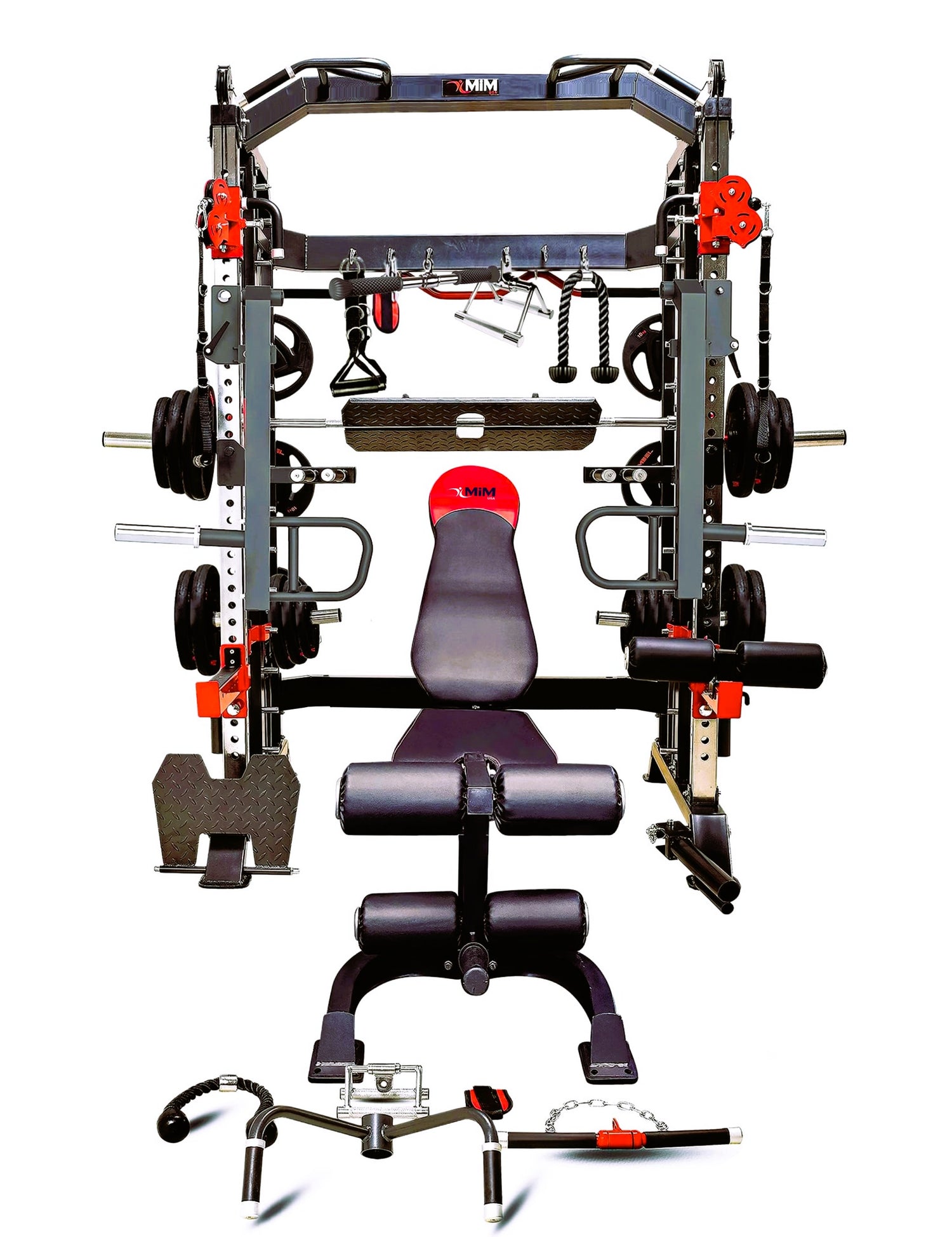 THE MULTI-FUNCTIONAL GYM COMBO – Our MiM USA Hercules gym set 1001 all in one smith machine home gym equipment includes Functional Trainer, Power Cage, Vertical Leg Press, Dip & Chin up Station, and Adjustable Weight Bench.. A Complete Set of Strength Workout Solution comes complete with Solid Weight Rod, Copper Bushing, Cable Length, Hard Chrome Plated Sleeves, Barbell, Lat Bar, Straight, Curl Bar, Standard, and Olympic Bar Storage, Spring Clips, and Rubber Stopper for Smooth Slide.